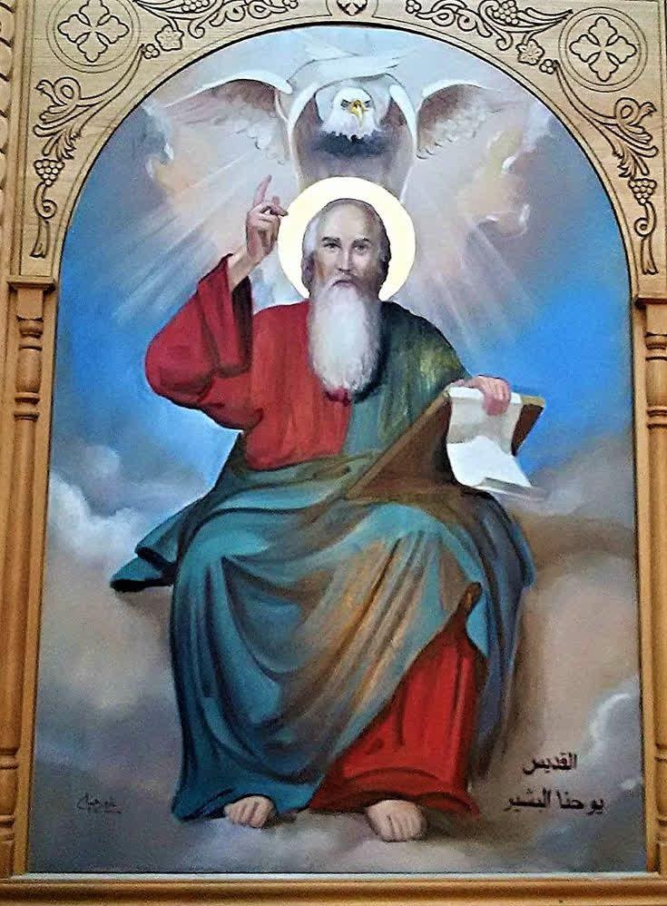 Jean : un des 12 apôtres, il était pêcheur et abandonne ses filets pour suivre Jésus. Il est surnommé « le disciple que Jésus aimait ». Il est représenté avec un aigle.