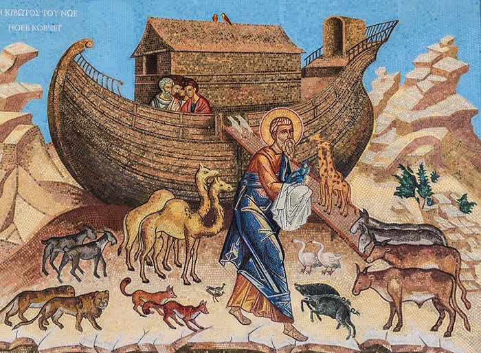 Noé : personnage de la Bible à qui Dieu demande de construire une arche (grand bateau) pour sauver sa famille et un couple de chaque espèce animale.