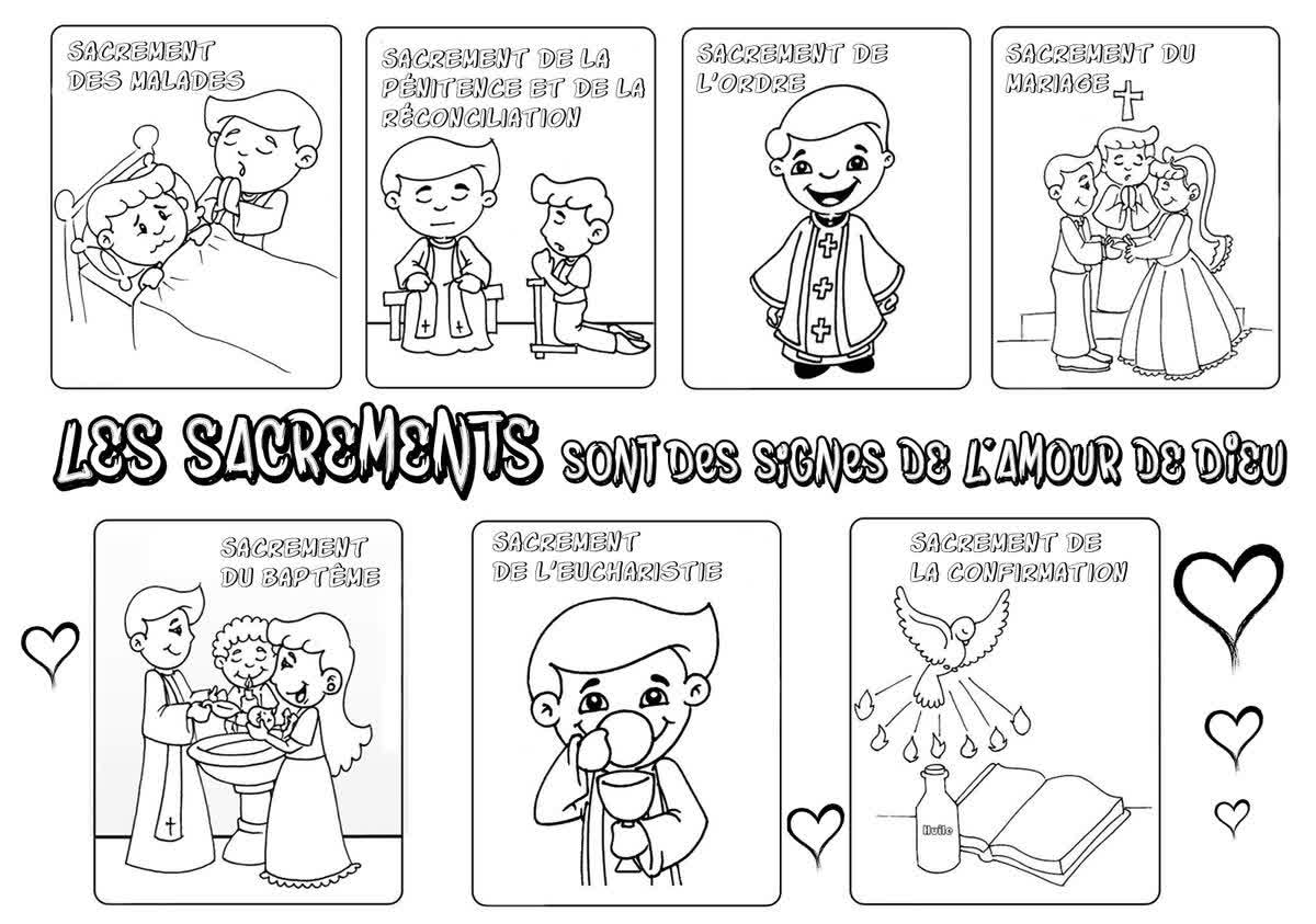 Sacrement : signe visible de l’Amour de Dieu. A travers eux, il nous donne sa vie, sa force et nous envoie vers les autres pour témoigner. En tout, il y a 7 sacrements : les sacrements de l'initiation (la baptême, l’eucharistie, la confirmation), l’ordre, le mariage, le sacrement du pardon et le sacrement des malades.