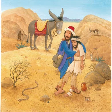 Samaritain : Parabole racontée par Jésus pour montrer qu'il faut aimer son prochain comme l'a fait le bon samaritain en portant secours à l'homme blessé.
