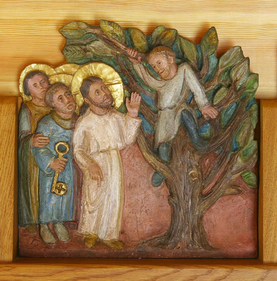 Zachée : collecteur d’impôts à Jéricho, il cherche à voir Jésus mais comme il est trop petit, il décide de monter dans un sycomore. A sa grande surprise, Jésus s'invite chez lui et cette rencontre va changer sa vie : il va rembourser et commencer une nouvelle vie fondée sur l'amour.