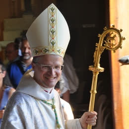 Evêque : successeur des Apôtres, le Pape lui confie un territoire (un diocèse) pour organiser les communautés chrétiennes. Notre Évêque s'appelle Monseigneur Xavier Malle. Il porte la mitre et tient une crosse.